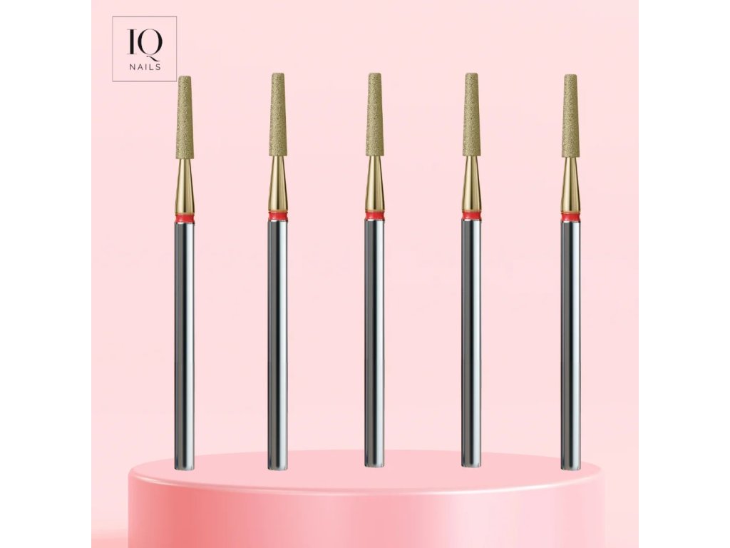 Sada 5 jemných fréz na kožičku - skosený kužeľ so zlatou povrchovou úpravou.